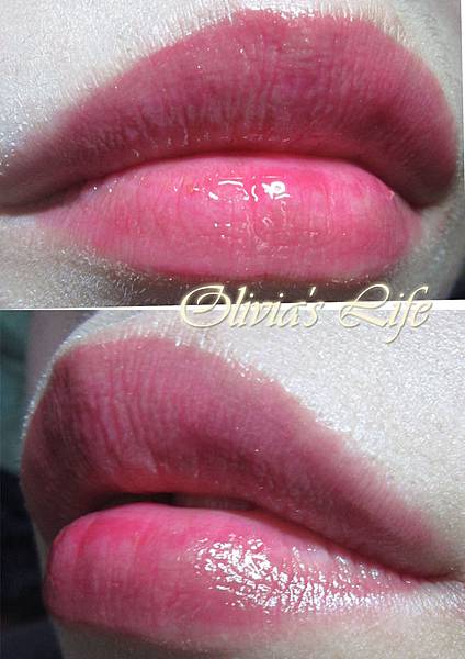 ↑是素唇(左)+擦一次的顯色度,雖然看起來很薄透,但很快就吃色